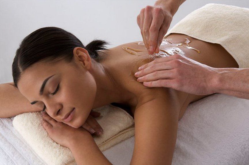 В услуги медового массажа входит — с помощью меда, разогретого в руках специалиста, прорабатывается кожа и подкожный слой спины, область живота, шейно-воротниковой зоны и плечевого пояса.